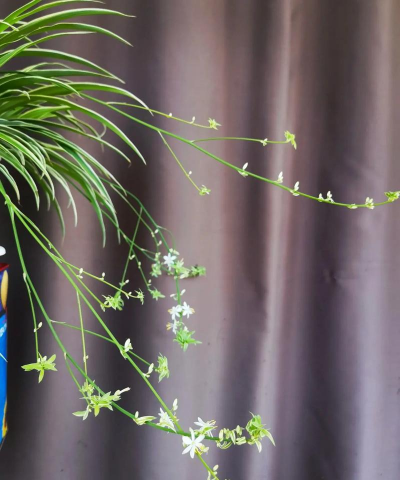 吊兰养殖容易,适应性强,最为传统的居室垂挂植物之一。它叶片细长柔软,从叶腋中抽生出小植株,由盆沿向下垂,舒展散垂,似花朵,四季常绿。