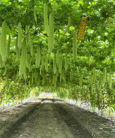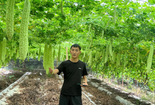 苦瓜苗定植后会开始爬藤,因此需要为其搭建生长的架子,并及时修剪掉苦瓜的弱枝、徒长枝和过密枝,避免养分过度消耗,为了提高苦瓜的产量和质量,在生长旺盛期还要追施尿素肥。