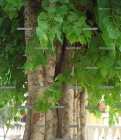 菩提树枝条也容易扦插成活,在春季或秋季选择8-15年生健壮的母株,在母株上选取具有饱满腋芽的枝条,截取半木质化部分长约15厘米的插穗(直径为0.5-0.8厘米左右)进行扦插繁殖,插穗株行距5厘米×10厘米,扦插深度约为3厘米,扦插完后搭上小弓棚,用白色塑料农膜盖上,前后两端保持通风透气,每天多次淋水保证小棚内较高的相对湿度(有条件可采用定时弥雾喷水)。