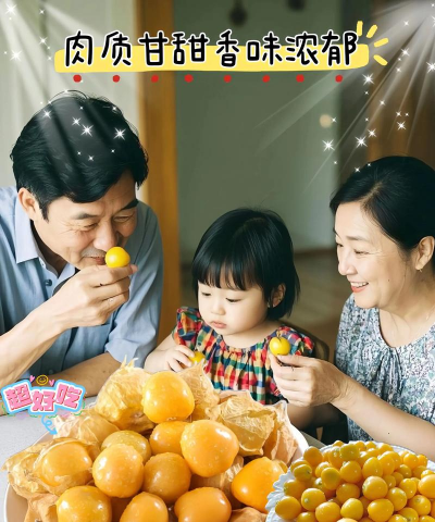 毛酸浆果实为圆球形浆果,成熟时呈黄色,果实成熟后可以直接食用,口味香、酸甜,色泽鲜艳。毛酸浆可作为原料,加工生产各种果汁、罐头、果冻、果酱和果脯。