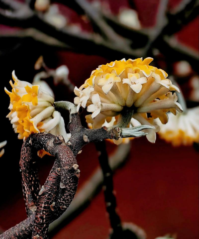 瑞香为中国传统名花,其树姿潇洒,四季常绿,早春开花,香味浓郁,因此而得名“瑞香”,颇受人们的喜爱,被誉为“上品花卉”。出生佛门的瑞香花立春吐出了花蕊,散发出馥郁的芳香。