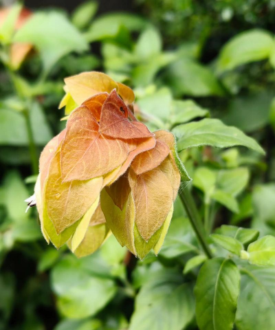 虾衣花(Justicia brandegeeana Wassh.&L.B.Sm.),是爵床科爵床属多年生草本或常绿亚灌木植物。虾衣花茎圆形,细弱,基部多分枝,全株被短粗毛;叶对生,卵形或椭圆形,先端尖,全缘,淡绿色,两面有短毛;花序顶生、下垂,具棕色、红色、黄绿色或黄色苞片,多数而重叠,形似虾衣;花白色、唇形;全年皆为花期果期。虾衣花因其苞片宿存,重叠成串,似龙虾,故而得名。