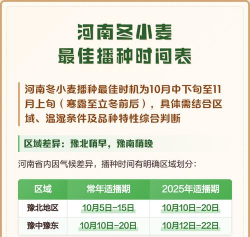 冬型品种适期的日平均温度为16~18℃,半冬型为14~16℃,春性为12~14℃。温空的高低受地理纬度和海拔的影响,即纬度和海拔愈高,气温愈低,播种期可早些。
