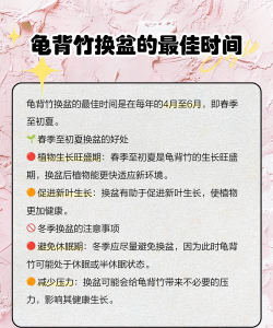 龟背竹在春天换盆好。正常情况下可以在3-4月份的时候进行,而且还要尽量选择一个晴天,换盆不能在下雨天气进行。为它更换盆土的话,能让植株有较大的生长空间,根系生长不会受到限制,新的土壤中养分还很充足,对于它后期的生长也很有帮助。