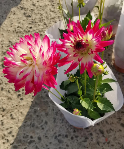 小丽花于大丽花为同属花卉,其性状与大丽花相似,只是植株矮小,株高约20~40 cm,分枝多,花头也多,多为单瓣中小型花。每株可着花数朵,同时开放。