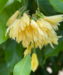 黄桷兰(毛茛目木兰科植物)一般指白兰(木兰科含笑属植物),白兰(Michelia×alba DC.)是木兰科含笑属常绿乔木。因其花白色,香若幽兰,故名白兰。高达17米,枝广展,呈阔伞形树冠;胸径30厘米;树皮灰色;叶薄革质,长椭圆形或披针状椭圆形,叶色浓绿;花洁白清香,花期4~9月,夏季盛开,通常不结实。白兰花的花语来自于它的外形:纯洁的爱,真挚。