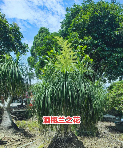 酒瓶兰婆娑而优雅;花白色。茎干苍劲,基部膨大如酒瓶,形成其独特的观赏性状,是热带观叶植物的优良品种。中国北方常以多种规格盆栽作为室内装饰;以精美盆钵种植小型植株,置于案头、台面,显得优雅清秀;以中大型盆栽种植,来布置厅堂、会议室、会客室等处,极富热带情趣,颇耐欣赏。