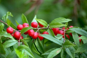 郁李果实可入药,味苦、辛、甘,性平。有润肠通便、消痈解毒的功效,可治疗津枯肠燥、腹胀便秘、食积气滞、小便不利、水肿等症状。