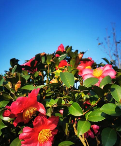 茶梅(Camellia sasanqua Thunb.)是山茶科山茶属的小乔木。分枝稀疏,嫩枝有毛;叶革质,椭圆形,上面干后深绿色,发亮,下面褐绿色,无毛;花大小不一,花苞及萼片被柔毛,花瓣阔倒卵形,红色;蒴果球形,种子褐色,无毛;花期11月至次年3月。因其花型兼具了梅花和茶花的特点,故名茶梅。