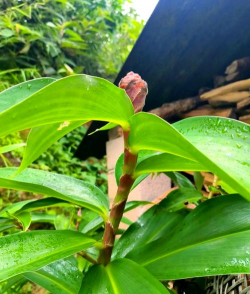 红花蕉是芭蕉科芭蕉属多年生宿根草本植物。单叶互生,叶大型,长椭圆形,黄绿色;叶柄长,基部抱茎;花序抽生于叶腋,直立苞片与花序近等长,苞片外部鲜红,内侧粉红,苞梢黄色,夏、秋开花;花期5-10月。