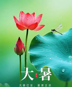 “暑”是炎热的意思,大暑,指炎热之极。大暑相对小暑,更加炎热,是一年中阳光最猛烈、最炎热的节气,“湿热交蒸”在此时到达顶点。大暑气候特征:高温酷热、雷暴、台风频繁。大暑,是二十四节气中的第十二个节气,也是夏季最后一个节气。斗指未,太阳黄经为120°,于公历7月22日—24日交节。