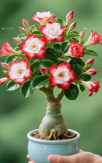 在种植沙漠玫瑰的时候,使用浅一点的花盆会比较好,如果说花盆过深的话,一旦把握不好浇水量,它的根系就容易腐烂。在选盆的时候,要避免使用塑料花盆,这样的花盆排水性不好,所以选盆使用紫砂盆或者是瓦盆比较好。
