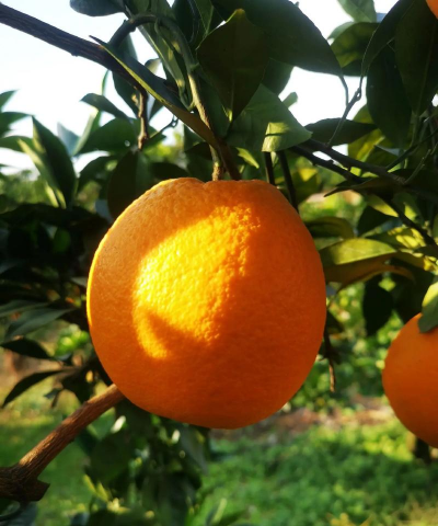 纽荷尔脐橙是美国加利福尼亚州Duarte的华盛顿脐橙芽变而成,外观美、肉质优、商品性好的鲜销品种。果实呈长椭圆形或短椭圆形,橙红色,美观,单果重250~350克,重者达750克。果皮光滑,皮厚0.42~0.55厘米,剥离难,具清香味。果肉细嫩而脆,化渣,汁多,囊瓣9~13片,不甚整齐,肾状,稍难分离。汁胞橙黄色,排列整齐,果汁甜酸适口,风味浓郁,富有香气。