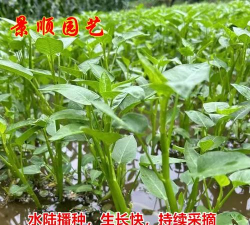 3.播种:一般露地播种期在4月中旬,温度不低于10度时适时播种,直播、条播、穴播播均可,早春种植的空心菜采用撒播的方式,撒播要均匀,每亩使用种子10公斤左右,夏季使用条播或者穴播,穴播每行间距30cm左右,穴的距离为15cm~20cm,每穴放置3~4颗种子,播种后覆盖1.5cm左右的薄土,随即浇水,盖上塑料地膜,以保证种子的温度、湿度,以促进幼苗根系的生长,大约1个月左右,在幼苗长大15厘米高度时就可以栽种。
