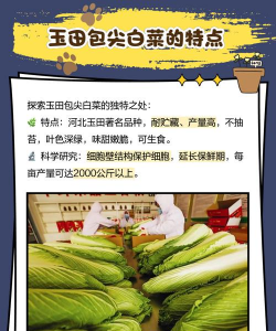 玉田尖白菜,河北省唐山市玉田县特产,中国国家地理标志产品。玉田尖白菜种植历史悠久,优良的气候、土壤和水质条件,形成了自己独特的蔬菜品质,玉田白菜,因耐贮藏、产量高、不抽苔、叶色深绿、叶脉细密、味甜嫩脆等特点而闻名中国,素有“玉菜”之称,是白菜中的上品。