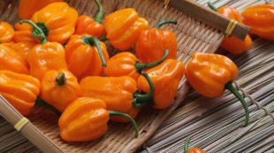 陵水黄灯笼辣椒(学名:Capsicum chinense),又名黄帝椒、黄辣椒、中国辣椒,是茄科茄亚族辣椒属的植物,是辣椒的5个栽培种之一,原产于古巴、巴西、秘鲁、玻利维亚、巴拉圭等国,由于在中国海南省栽培品种颜色为金黄色而得名。黄灯笼椒富含辣椒素类物质,辣度高,可达170000SHU,一般不作为鲜食,在海南省主要做成黄灯笼辣椒酱。
