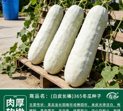 365冬瓜是一款受欢迎的冬瓜品种,是一种早熟冬瓜,蜡粉比较厚,贮存期比较长,可放1年,个头不小,可达4斤,吃起来脆甜,而且产量也不错,毎株冬瓜上可结8-12个果子。