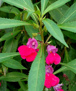 凤仙花是一年生草本植物,基部有对生的叶子。叶子披针形或倒披针形,长约4-12厘米,宽约2厘米。叶缘有锯齿,两面光滑无毛,叶柄长13厘米。