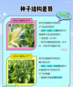 第一点:种子不同。双子叶植物种子中的胚会发育成两片叶子,而单子叶植物种子的胚只能形成一个叶子。