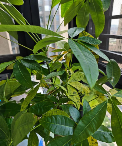 发财树对水分需求较大,长期缺水就会导致根系干枯,无法为叶片输送水分和营养,使树叶发黄干枯而掉落,此时要沿着盆边为发财树浇灌一次透水,直到盆底有积水流出为止,后期管理时,可以在发财树盆土中插入棉棒,棉棒抽出干燥,再浇灌水分。