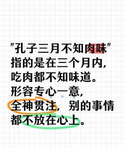 三月不知肉味是指在三个月内,吃肉都不知味道。形容专心一意,全神贯注,别的事都不放在心上。现亦用以形容清贫,谓三个月没有吃过肉。出自于《论语·述而》。周朝时期,孔子出使齐国,齐国是韶乐和武乐的正统流传之地。孔子到达齐国时正逢齐王举行盛大的宗庙祭祀,孔子亲临大典,聆听了三天韶乐和武乐的演奏。