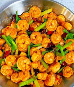 爆炒虾仁首先把虾仁去皮,去虾线,放入少许食盐、淀粉和蛋清腌制一下。锅中烧油,虾仁入锅炸2分钟后捞出,再向锅中倒入少许食用油,放入蒜末、剁椒、葱段、生抽等调味,然后倒入虾仁爆炒,加入食盐、鸡精,少许水淀粉勾芡即可出锅。