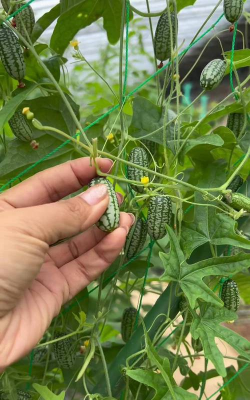 种植拇指西瓜时,需要在植株长出2-3片真叶后,将其移栽至土壤中,再对拇指西瓜浇灌一次水分,使其快速适应环境,而且在拇指西瓜长出5-7片叶子后,需要为其搭架引蔓,有利于植株快速开放花朵。