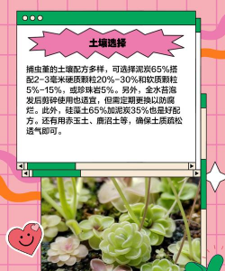 捕虫堇大多数适合种植在土质疏松,偏碱性或者中性的土壤中,可建议将珍珠岩、泥炭、蛭石等比例混合使用。