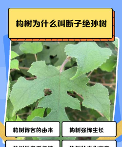 构树是断子绝孙树的说法是不科学的,是一种迷信的说法,构树只是一颗普通的树。构树是桑科、构属的落叶乔木,高约10-20米,树皮颜色为暗灰色,小枝密生柔毛,树皮平滑,叶子呈螺旋状排列,广卵形至长椭圆状卵形,花雌雄异株,雄花序为柔荑花序,雌花序球形头状,聚花果成熟时为橙红色,呈肉质。