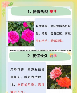 月季花的花语是:美艳、光荣、幸福,它在开花的时候有多种花色,不同的花色含有的意思也是不同的。红色月季表示纯洁的爱;粉红色月季代表着初恋;橙黄色月季具有青春、美丽的意思;而白色月季在日本象征父爱,是父亲节的主要用花;蓝紫色月季则表示珍贵、珍稀。