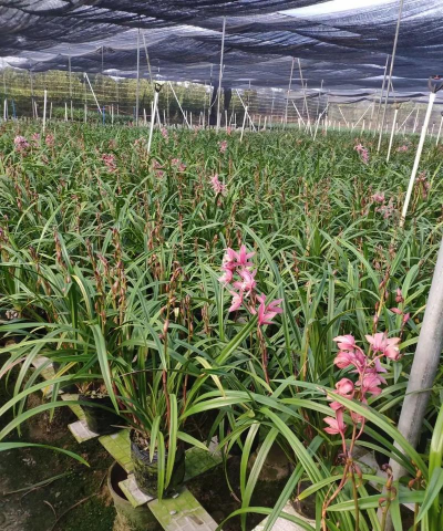 大花蕙兰:大花蕙兰具有较高的观赏价值,有艳丽的花朵、修长的剑叶,花型整齐且质地坚挺,经久不凋,是人们喜爱的观赏植物,适生冬季温暖和夏季凉爽的环境。
