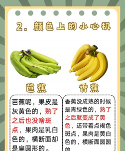 很多人都觉得香蕉和芭蕉难以区分,其实它们两者成熟时候的颜色是不一样的,芭蕉在成熟的时候为灰黄色,打开果皮后芭蕉果肉的颜色为乳白色,而香蕉的颜色会带有一些褐色斑点的黄色,果肉为黄白色。