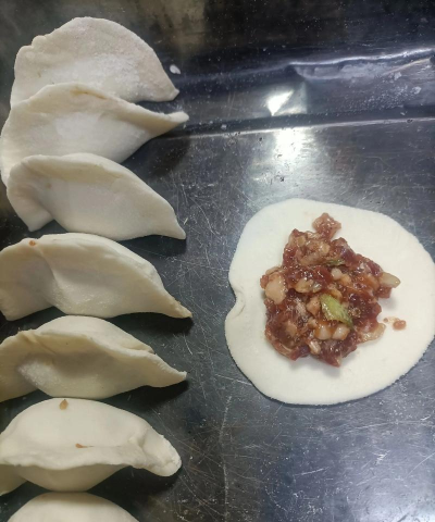9、将馅料包入饺子皮中,封口捏紧,然后放入沸水中煮熟即可。