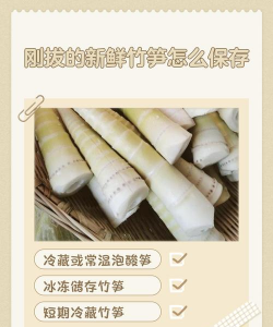 保存竹笋可以用塑料袋将它密封起来放置于家中阴凉、通风的地方,这样可保存一个月左右。或把竹笋放入高浓度的盐水中浸泡,这样可保存两个月左右。还可以将竹笋的外皮剥去并对半切开,放入锅中蒸至半熟后再取出通风保存,这样可保存半个月。那么保存竹笋的方法有哪些?