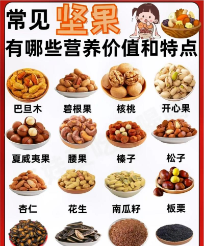 坚果是闭果的一个分类,果皮坚硬,内含1粒或者多粒种子。一般来说,坚果是植物的精华部分,具有丰富的营养价值,是植物生长后期提供的最终产品。那么常吃的坚果有哪些?