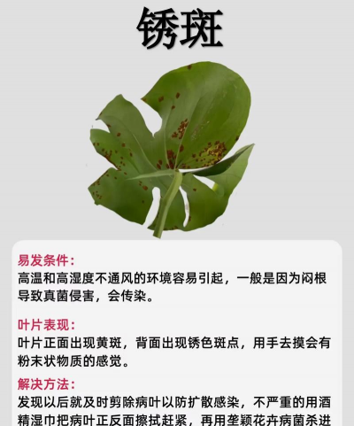 红蜘蛛/蚜虫 :背面密密麻麻小虫,可用肥皂水或吡虫啉乳油喷洒。
