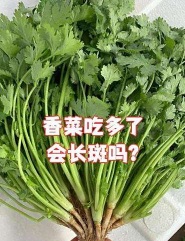 吃香菜不会长斑。香菜又叫做芫荽,为双子叶植物纲、伞形目、伞形科、芫荽属植物。香菜状似芹,叶小且嫩,茎纤细,味郁香,是汤中的佐料,还可用于凉拌菜佐料,或烫料、面类菜中提味用。香菜原产地是欧洲地中海地区,据传是中国西汉时张骞从西域带回,现各地均有栽种。