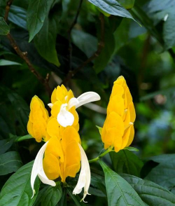 金苞花喜高温、高湿、阳光充足的环境。因此,在选择种植地点时,应尽量选择阳光充足的地方,如阳台、庭院等。同时,为了保持较高的空气湿度,可以在花盆周围放置一些水盘,或者在夏季和干旱季节经常向植株喷水。