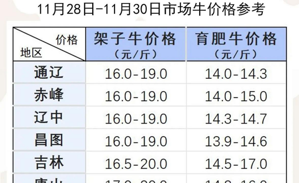 价格区间:全国活牛出栏价普遍在 13.5-16.5元/斤,南方销区(如广东、上海)价格高于北方产区(如黑龙江、新疆)15%-20%。