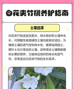 夹竹桃适合在中性或微酸性土壤中生长,在栽种时,应选择适宜的土壤,并定期松土和更换土壤,以保持土壤的透气性和排水性。