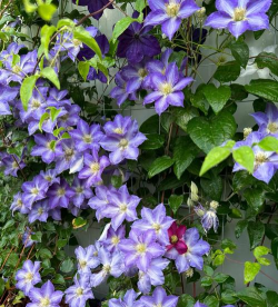 铁线莲搭配花架、棚架、廊、灯柱、栅栏、拱门,构成园林绿化独立的景观,既能满足游人的观赏,又能够增加绿化量,两全其美。