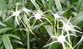 水鬼蕉是石蒜科水鬼蕉属多年生草本植物。其茎干较高,呈圆柱形,深绿色;叶子较小,无叶柄,呈椭圆状披针形;花朵较大,呈多边形,淡白色,表面光滑无毛。水鬼蕉的雄蕊着生于喉部,而下部为漏斗状副冠,形状有如螯蟹腿、蜘蛛脚,这也是其名字“水鬼蕉”的由来。