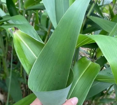 箬叶,为禾本科、竹亚科、箬竹属植物叶。箬竿高0.75-2米,直径4-7.5毫米;节间长约25厘米,最长者可达32厘米。箨鞘长于节间,上部宽松抱竿。小枝具2-4叶;叶鞘紧密抱竿,有纵肋,背面无毛或被微毛;无叶耳;叶舌高1-4毫米,截形。