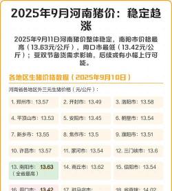 根据最新的市场数据,2025年10月19日河南省的生猪价格呈现稳中略涨的趋势,具体信息如下:
