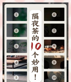 6.清洁作用:隔夜茶还可以用来擦拭家具,使家具表面变得干净,并带有淡淡的茶香。用隔夜的茶来漱口或洗手,能很好的祛除油渍及腥味,清新口气,对治疗口臭有一定辅助作用。