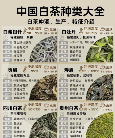 按照采摘原料品级来分,白茶可以分为白毫银针、白牡丹、贡眉和寿眉。白毫银针全部用芽头制成,芽头肥壮,全身披满白毫,带有小叶壳,是白茶中的佳品。白牡丹则是由一芽一叶或一芽二叶制成,芽头稍肥壮,白毫明显,叶片怀抱毫心,姿态优美。贡眉和寿眉则分别用一芽三叶或一芽四叶以及短小芽片和大白茶片叶制成,它们在形态和口感上各有特色。