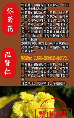 怀菊花具有清热解毒的功效,能有效缓解风热感冒、上火等症状,对于目赤肿痛、心胸烦热等病症也有一定的缓解作用。