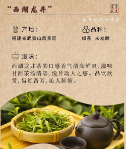 2.滋味:龙井茶的滋味鲜爽而甘醇,入口后有一种清凉感,仿佛能够驱散体内的燥热。茶汤在口中流转时,能够感受到其丰富的层次感和回甘的悠长。