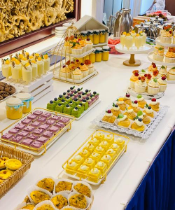 西式小吃:蛋糕、甜点、水果、花式果盘和一些中式蛋糕等。