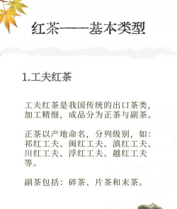 红茶:红茶的制作包括萎凋、揉捻、发酵、干燥等工序。发酵是红茶品质形成的关键步骤。